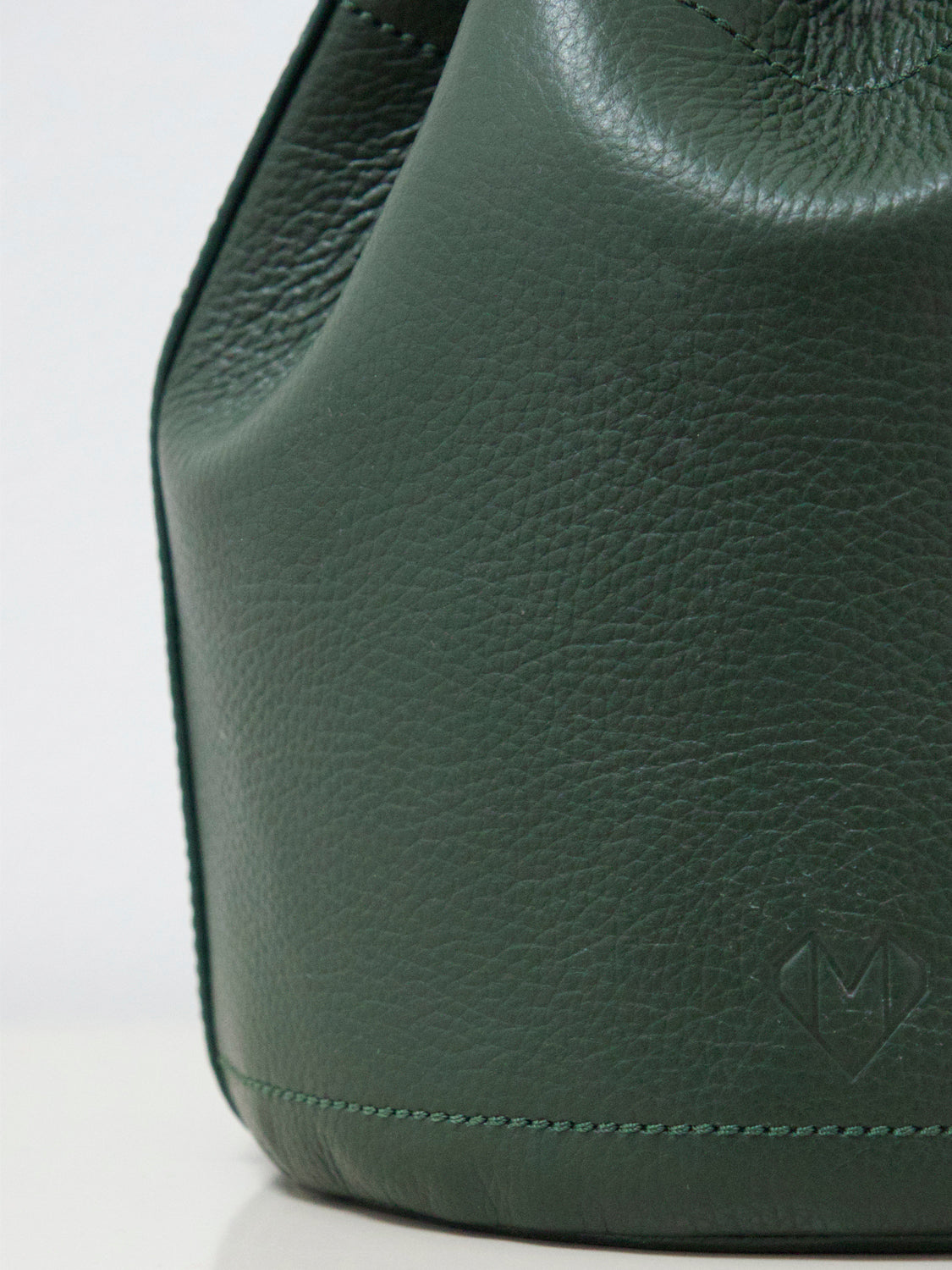 Alça curta de pele e alça longa com regulador estilizada com o logo MAHRLA, para uso à tiracolo ou no ombro. Ambas as alças são removíveis.