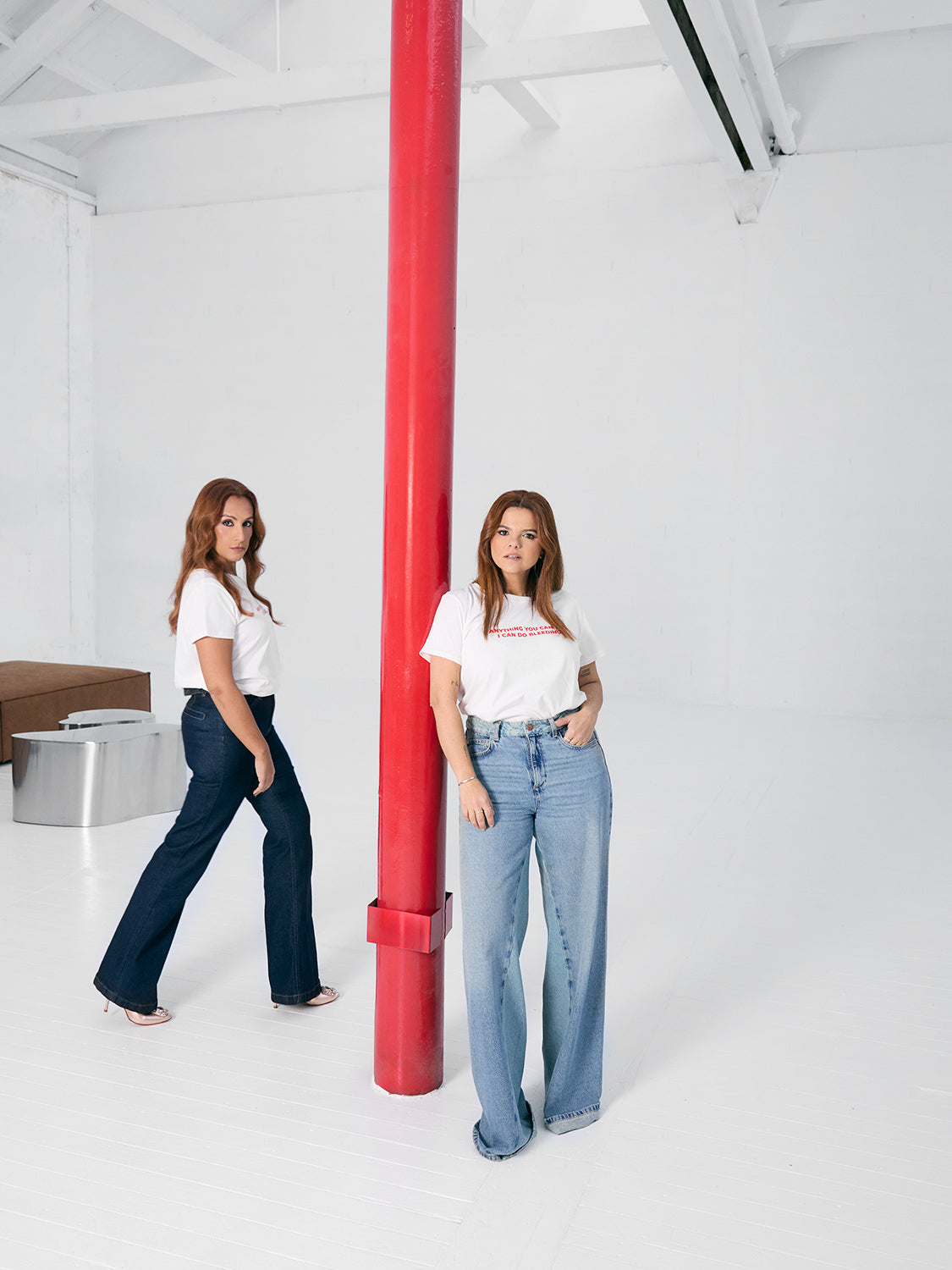 Susana veste t-shirt tamanho XS/S e Sílvia o S/M nas fotos.